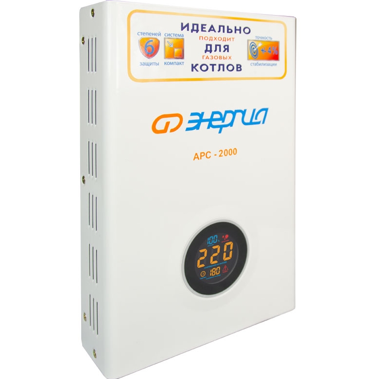 Стабилизатор напряжения Энергия АРС - 2000 для котлов предназначен для стабилизации переменного напряжения в сети электроснабжения для потребителей бытового и аналогичного назначения.