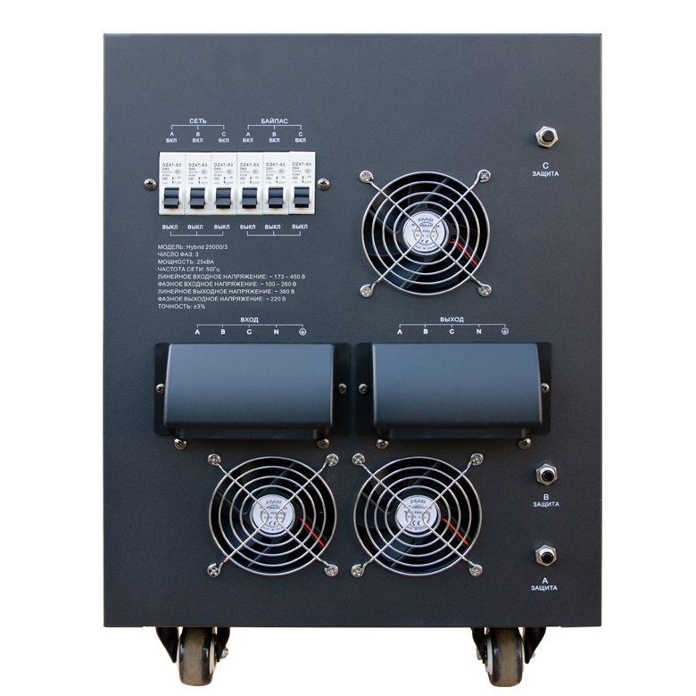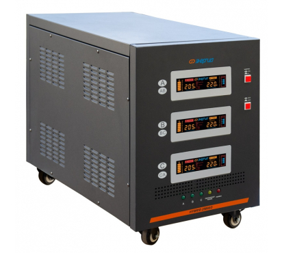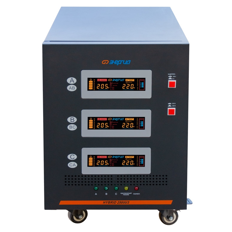 Стабилизатор напряжения Энергия Hybrid - 25000/3 II поколение используется для стабилизации напряжения в бытовой сети электроснабжения.