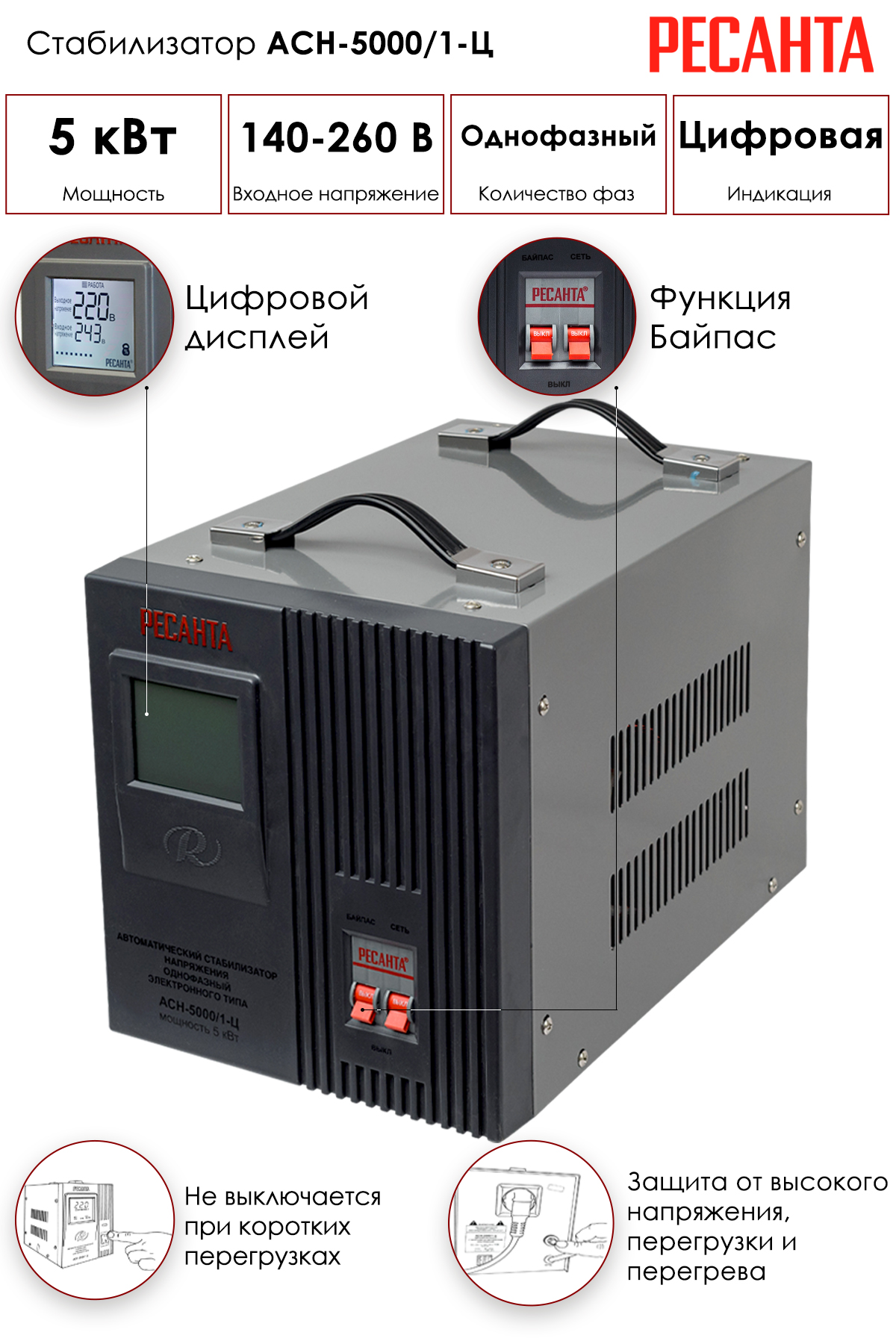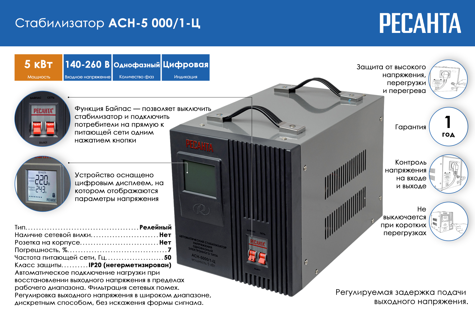 Технические характеристики стабилизатора ресанта асн- 5 000/1-ц