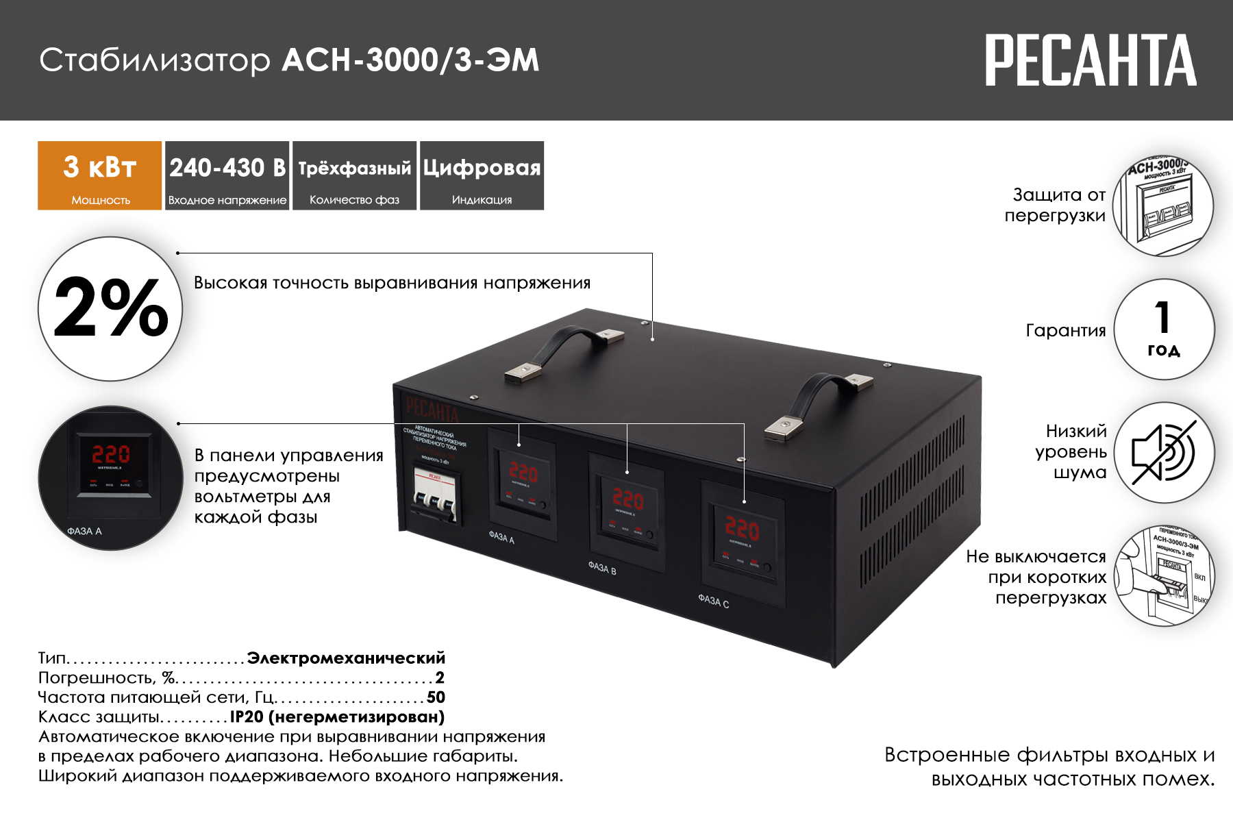 Технические характеристики стабилизатора ресанта трехфазный асн- 3 000/3