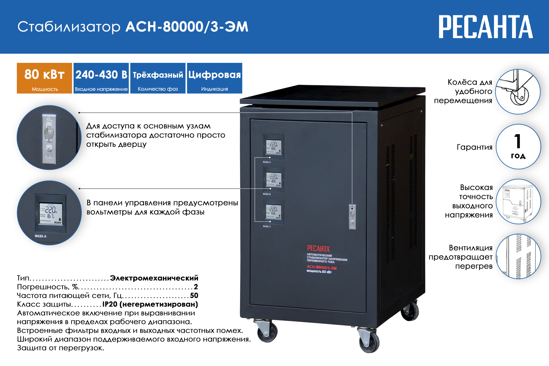 Технические характеристики стабилизатора ресанта асн-80 000/3