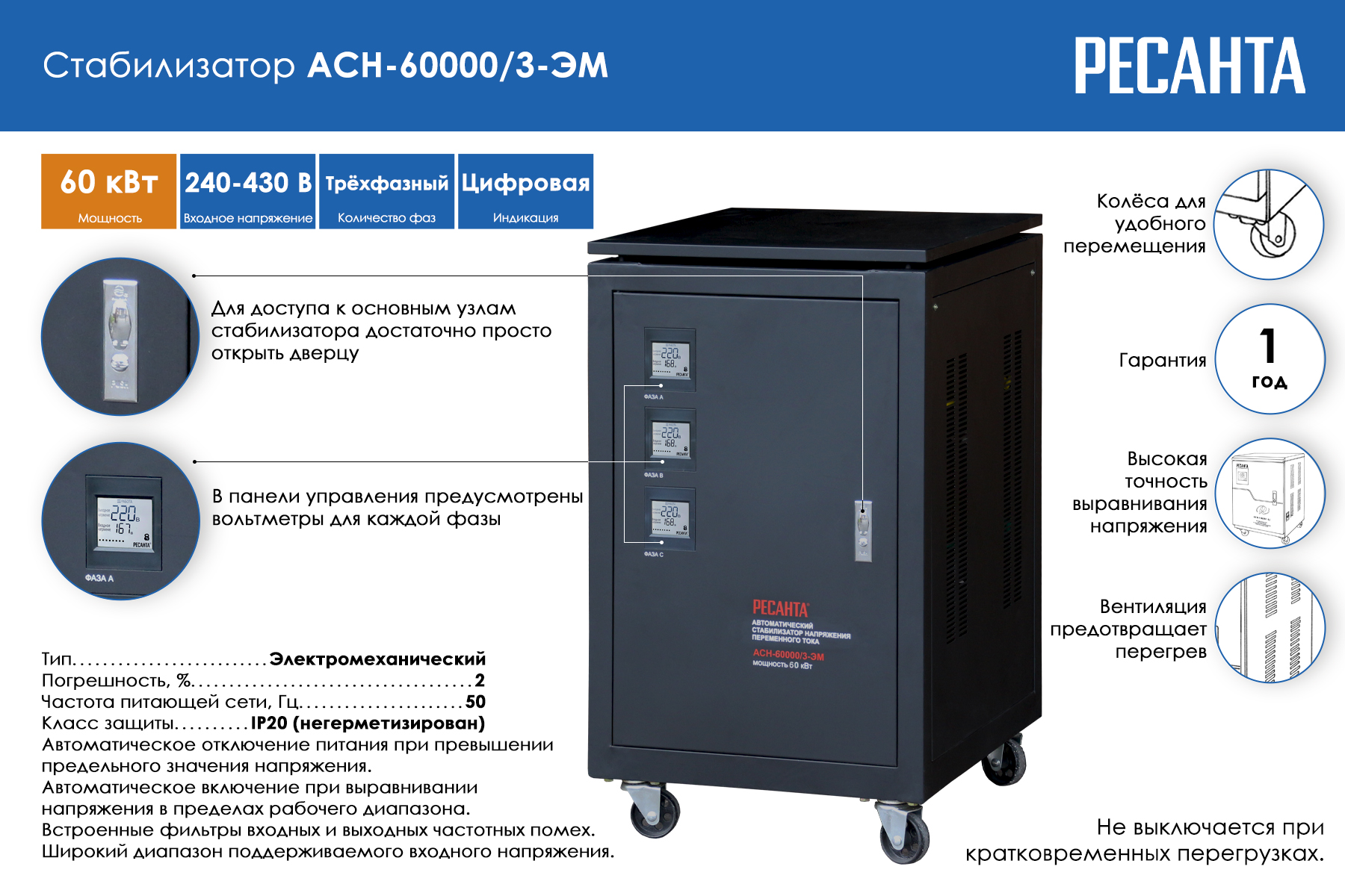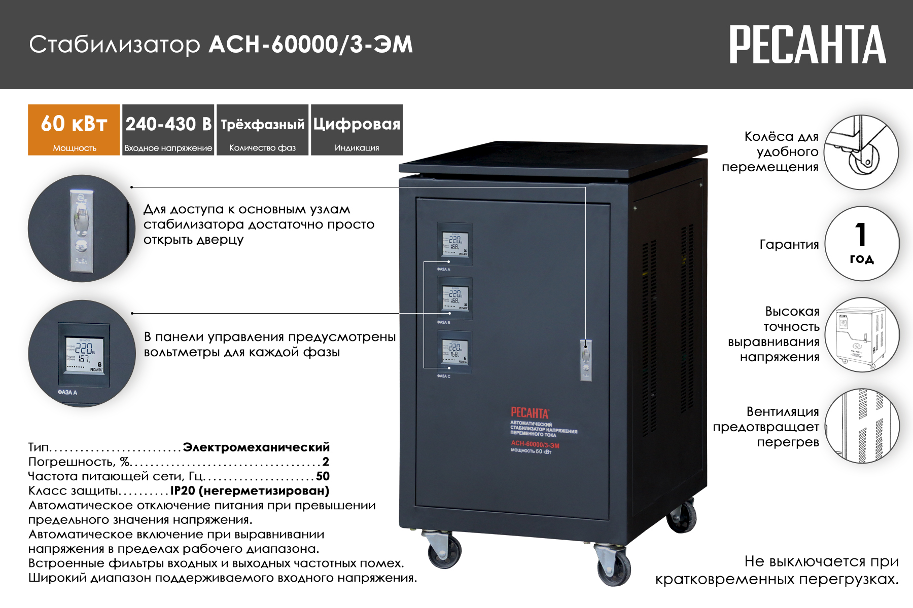 Технические характеристики стабилизатора ресанта асн-60 000/3