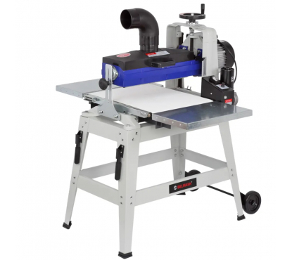 - Шлифовальный барабан имеет консольное расположение. При необходимости обработки более широких заготовок можно снять левую стойку и в два прохода обрабатывать детали шириной до 500 мм.