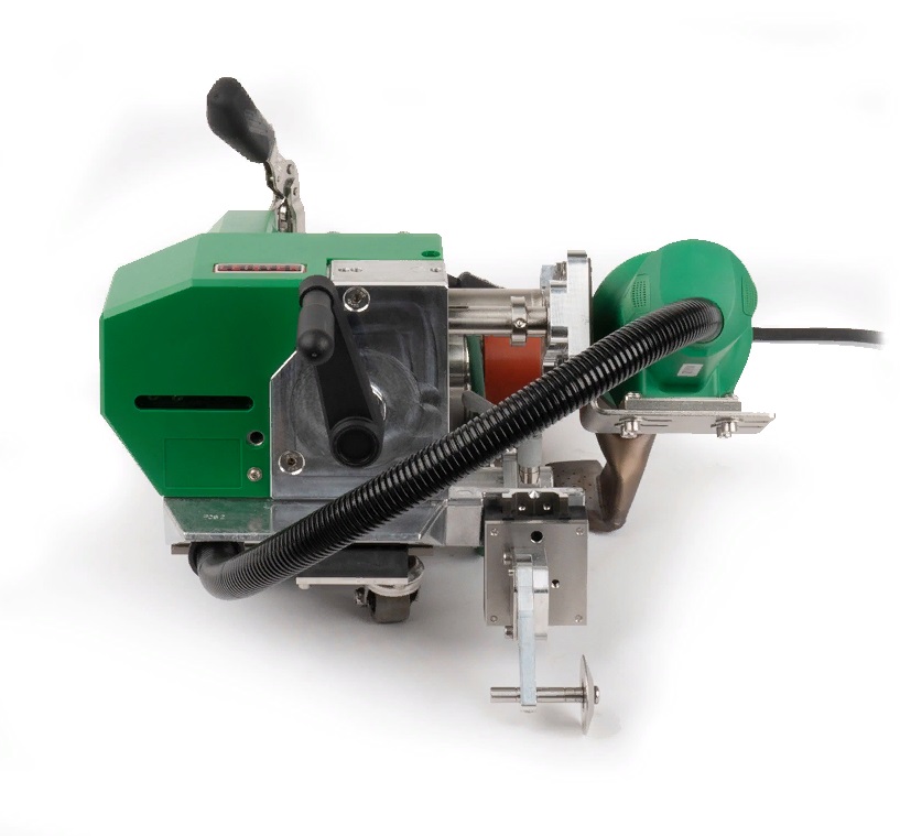 Сварочная машина - используется для сварки горячим воздухом технических ПВХ-тканей, пленок и полимерных материалов. Модернизированная подача насадки в зону сварки, поддержка края ткани, возможность увеличить вес аппарата – для сварки материалов любой плотности. Быстросъемные приспособления позволяют выполнять еще больше операций по свариванию технических тканей.