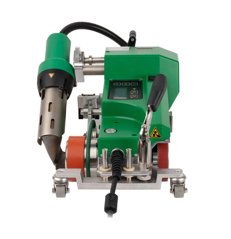 Сварочная машина - используется для сварки горячим воздухом технических ПВХ-тканей, пленок и полимерных материалов. Модернизированная подача насадки в зону сварки, поддержка края ткани, возможность увеличить вес аппарата – для сварки материалов любой плотности. Быстросъемные приспособления позволяют выполнять еще больше операций по свариванию технических тканей.