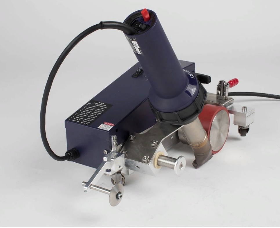 Сварочный аппарат горячего воздуха - используется для сварки внахлест технических ПВХ-тканей. Возможность установки груза для увеличения сварочного давления (дополнительная опция, поставляется отдельно). Оснащен лазерной направляющей для точности позиционирования при сварке. Предназначен полимерных полотен средней плотности.