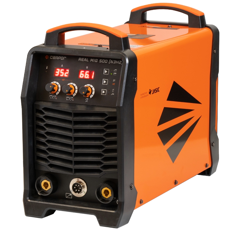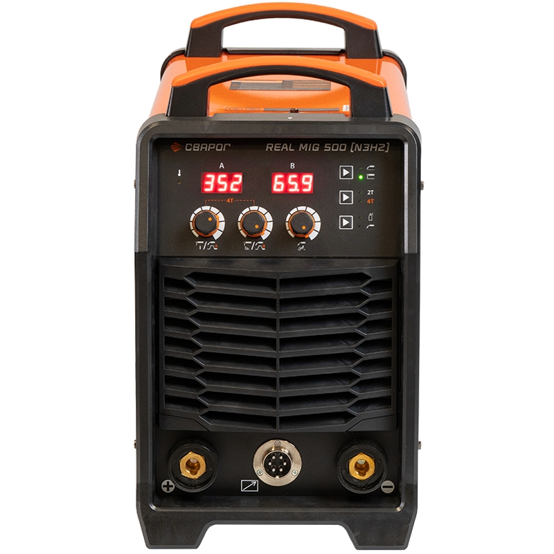 Сварочный инвертор Сварог REAL MIG 500 (N3H2) используется для полуавтоматической сварки в среде защитных газов (MIG/MAG), сварки порошковой проволокой (FCAW), ручной дуговой сварки покрытым электродом (ММА), а также аргонодуговой сварки неплавящимся электродом (TIG DC).