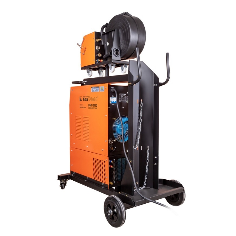 Сварочный полуавтомат Foxweld UNO MIG 350 DOUBLE PULSE используется для сварки различных металлов и сплавов на постоянном и переменном токе. Полуавтомат собран на тележке, имеющей площадку для размещения газового баллона. Полуавтомат имеет синергетическую систему управления, что существенно облегчает настройки параметров сварки.