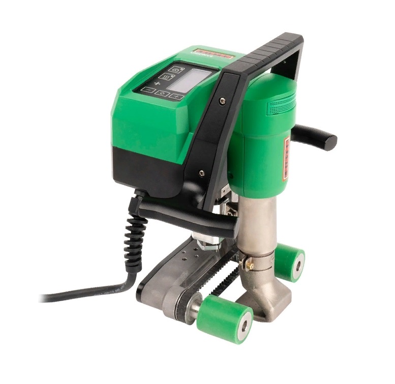 Сварочный полуавтомат - используется для высококачественной сварки внахлест кровельных покрытий из ПВХ-пласт., ЭСБ, ЭПДМ, ХСПЭ, ТПо в труднодоступных местах. Может применяться в тех случаях, когда запрещено использование открытого пламени. В три раза производительнее ручного сварочного аппарата. Две эргономичные рукоятки помогут правильно распределить давление на сварочный шов, что обеспечит безупречный по качеству результат. Благодаря двойному приводу направление сварки мгновенно меняется с помощью комбинации клавиш.