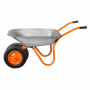 Тачка садовая Вихрь модели Т65-2 великолепно подойдёт для работы в саду. Перевозка земли, стройматериалов, удобрений - это то, с чем с легкостью будет справляться тачка Вихрь Т65-2. Объем кузова составляет 65 литров, а максимальная грузоподъемность - 85 килограмм. Конструкция рамы обеспечивает крепкую сцепку с кузовом, не давая ему прогибаться при использовании. Тачка проста в эксплуатации, легко разбирается и собирается за счёт болтового соединения. Два пневматических колеса диаметром 36 см повышают проходимость, устойчивость и управляемость тачки даже при полной загрузке.