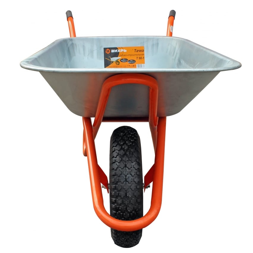 Тачка садово-строительная Вихрь Т90-1 предназначена для перевозки грузов до 200 кг. Колесо типа 4.80-8, 380мм с подшипниками обеспечивает высокую проходимость и удобство при использовании. Объем кузова составляет 90 литров и имеет толщину металла 0,8 мм. Рама крепко сцеплена с кузовом и придаёт жесткости всей конструкции. Имеются накладки на ручки для удобного хвата. Возможна транспортировка как крупных, так и мелких рассыпных грузов. Большой запас прочности повышает надёжность модели и гарантирует длительный срок службы без поломок.