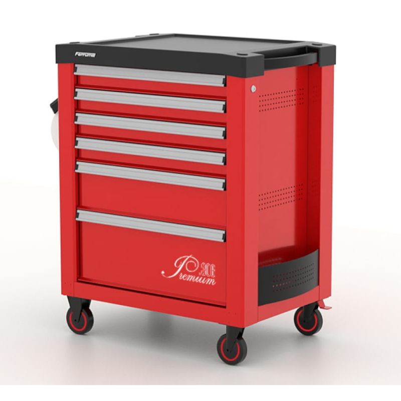 Тележка инструментальная 6 ящиков 12.306 используется для хранения ручного инструмента и оборудования. Тележка оборудована механизмом антиопрокидывания, совмещенным с центральной системой запирания, блокирующем открытие любого выдвижного ящика при уже открытом одном выдвижном ящике, с целью предотвращения самопроизвольного опрокидывания тележки.