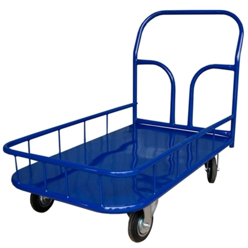 Тележка платформенная ТП (800х1250) с поворотной осью и бортами 300 мм (колеса 250 мм) предназначена для перевозки грузов, используется в складских помещениях и на производственных объектах.