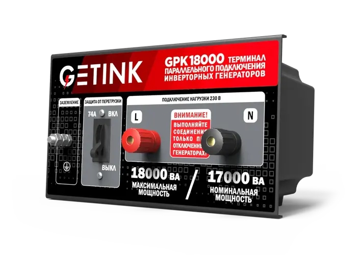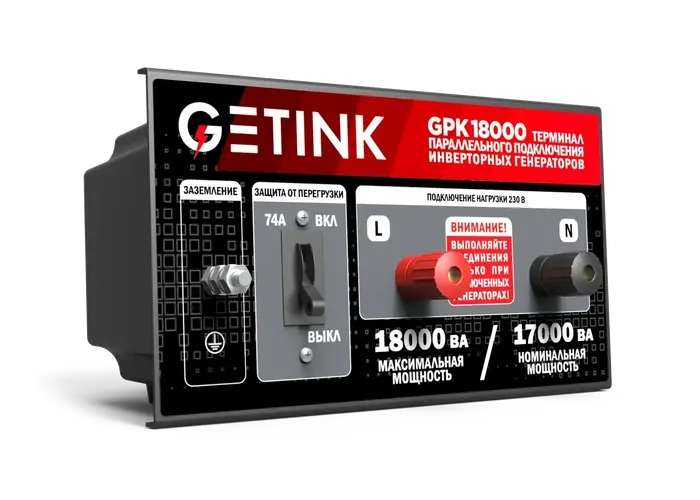 Терминал параллельного подключения GPK 18000 - предназначен для создания одной единой сети большой мощности при помощи 2 инверторных генераторов Sunreka.