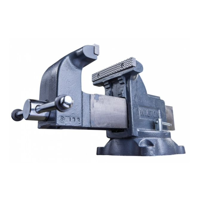 Тиски верстачные WILTON "Мастерская" WS4 подходят для любительского использования, при этом модель в полной мере сохраняет функционал, характерный для профессиональных аналогов. Конструкция имеет поворотное основание с двумя фиксаторами, обеспечивающие быстрое и легкое позиционирование. Корпус выполнен из высокопрочного чугуна, имеет широкую наковальню и основной захват со съемными закаленными стальными губками для более крепкого зажима.