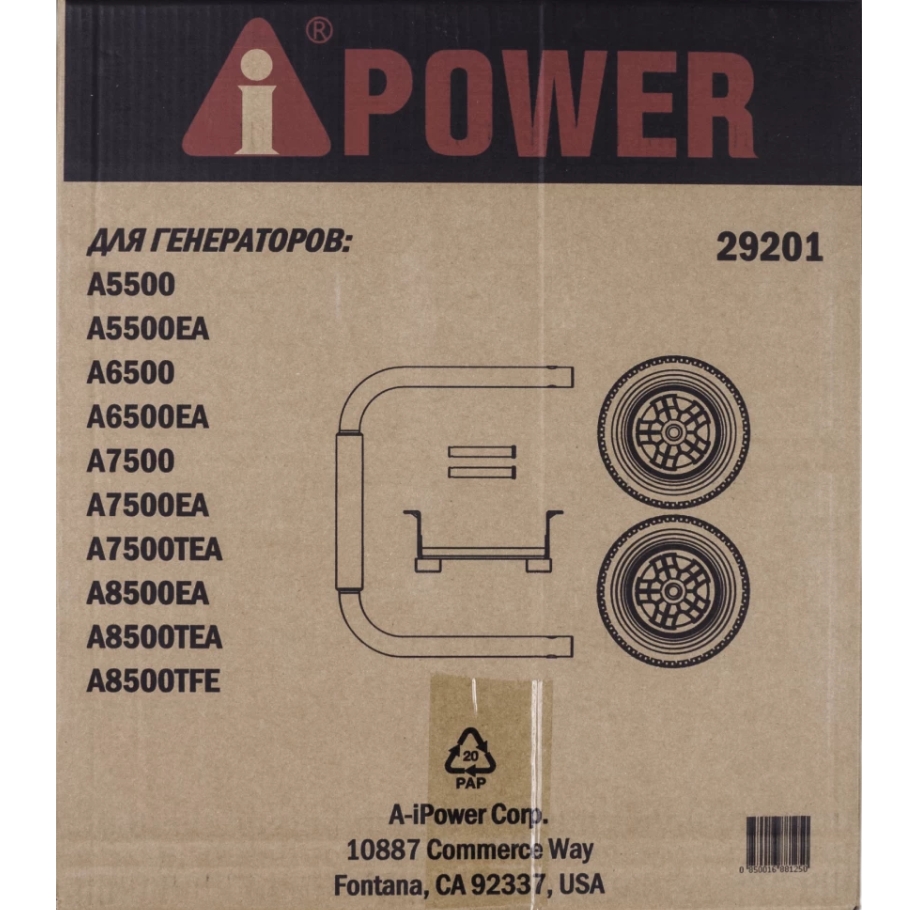 Транспортировочный комплект A-iPower размер L подходит для бензиновых генераторов A-iPower A5500, A5500EA, A6500, A6500EA, A7500, A7500EA, A7500TEA, A8500EA, A8500TEA, A8500TFE, A6000EAX, A7000EAX, A8000EAX, A9000EAX, A9000TEAX. Комплект состоит из ручек, колёс и комплекта крепежа.