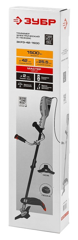 Технические характеристики триммера электрического (электрокоса) ЗУБР ЗКРЭ-42-1500