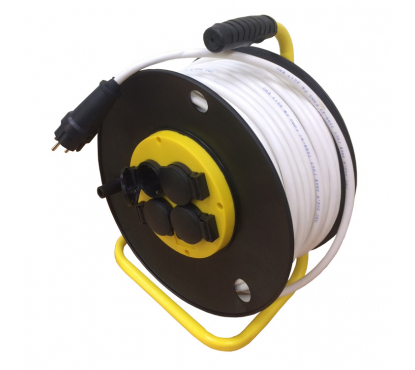 Удлинитель на металлической катушкее 4-местный SUNTEK ПВС-ВП 3х2,5 черный 30 м