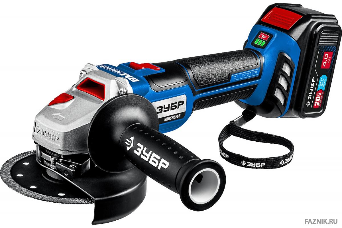 Углошлифовальная машина УШМ ЗУБР AB-125-42 Профессионал безщеточная (2 АКБ 4Ач)
