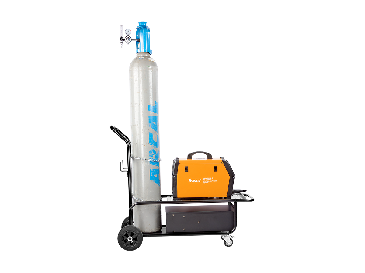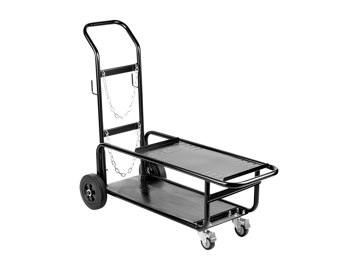 На тележку можно установить сварочный источник, подающее устройство, кулер, а также газовый баллон. На платформе тележки предусмотрены крепления для фиксации, а крепежные отверстия позволяют закрепить оборудование разных габаритов.