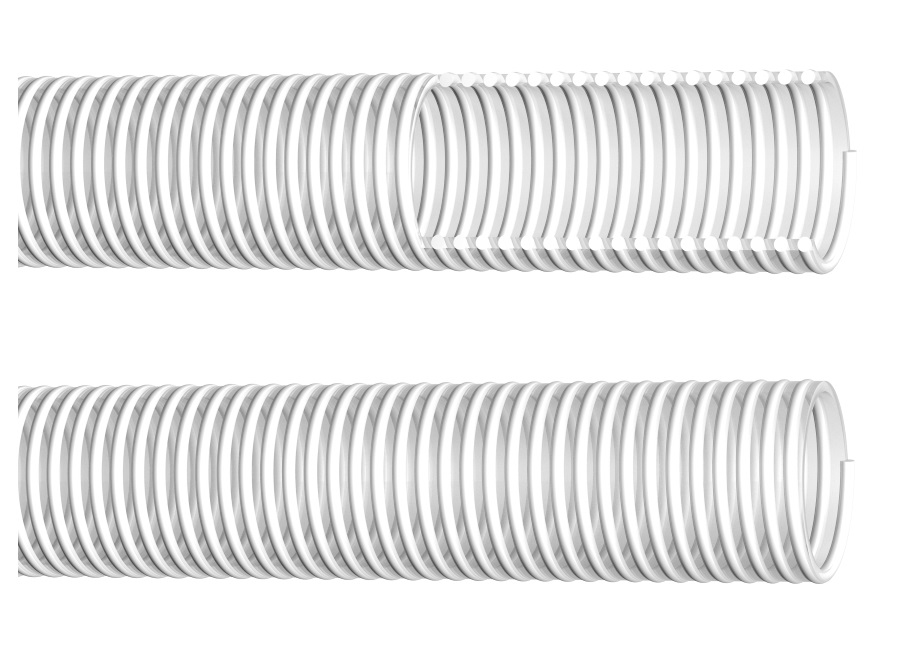 - Прозрачная стенка ПВХ, жёсткая белая спираль ПВХ.