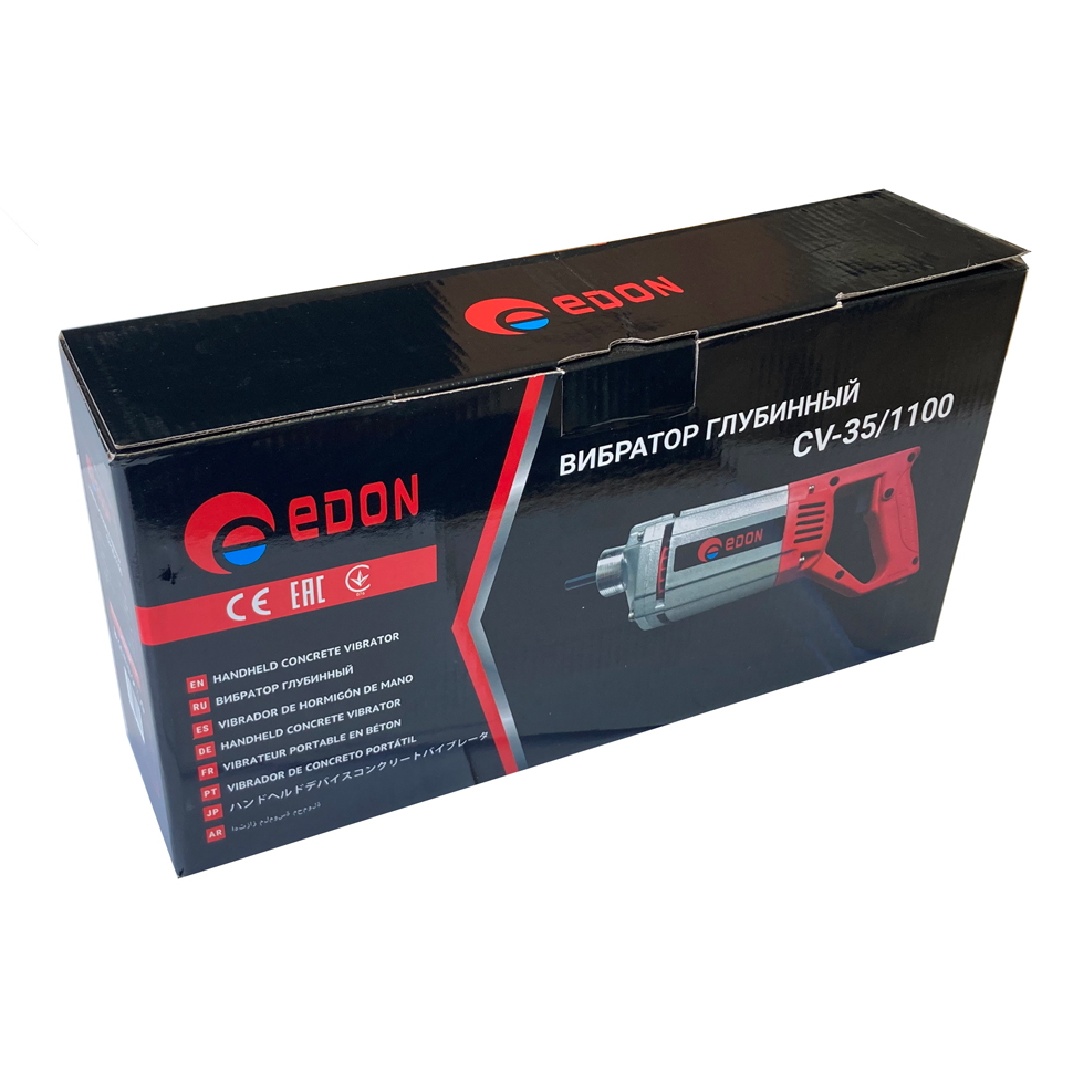 Вибратор электрический ручной Edon CV-35/1100 применяется для уплотнения песчано-цементных и бетонных смесей при изготовлении бетонных и железобетонных конструкций.