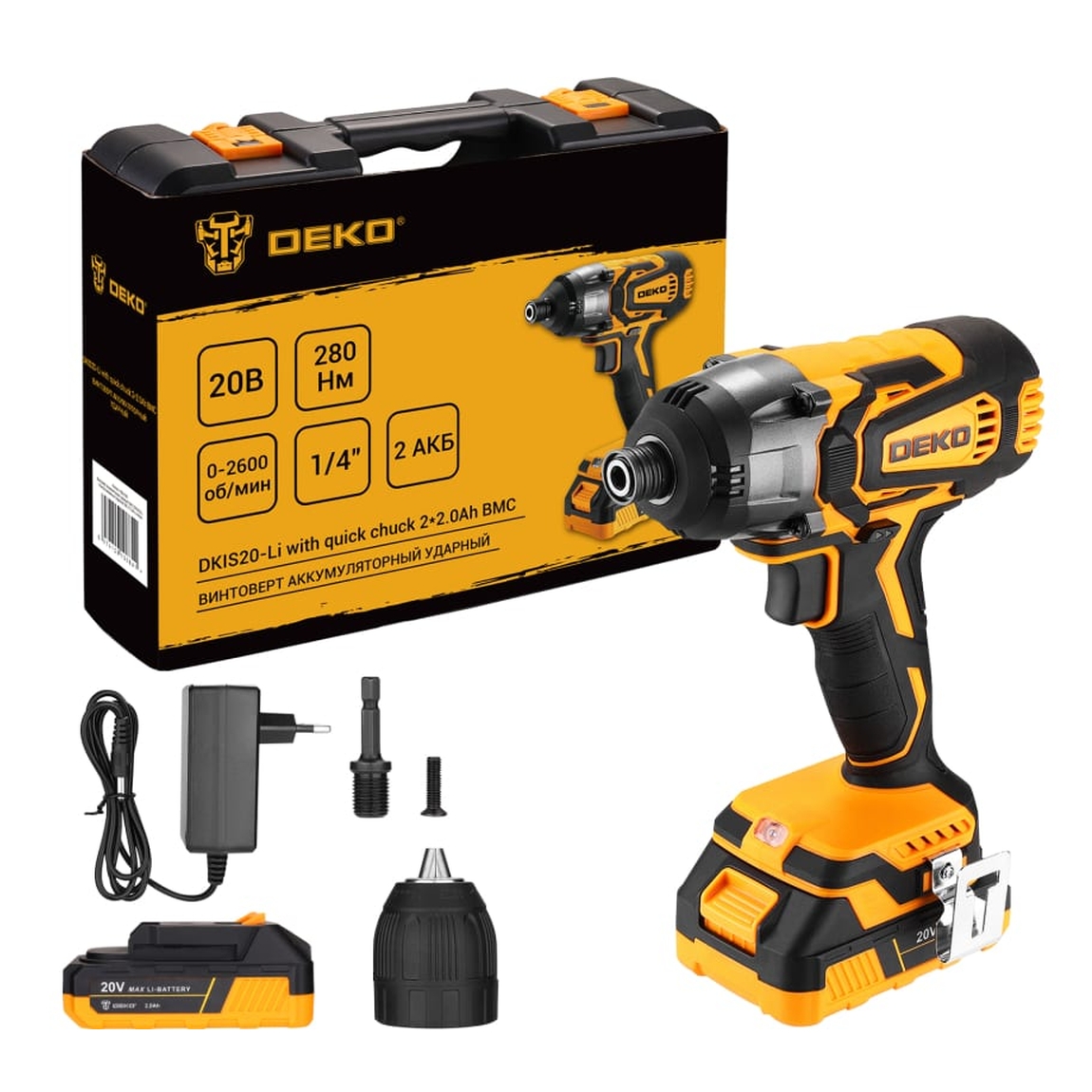Винтоверт аккумуляторный ударный DEKO DKIS20-Li с быстрозажимным патроном 20В 2*2.0Ач
