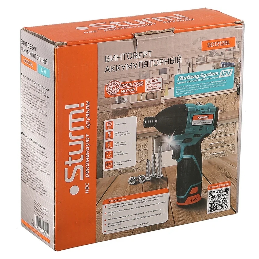 Винтоверт ударный Sturm SD1212BL используется для решения практически любых задач по завинчиванию крепежа в древесине или металле.