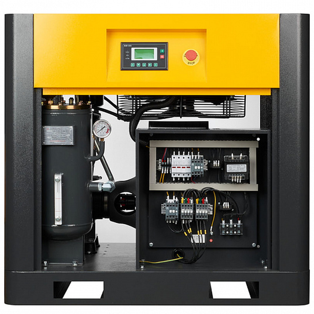 - Простота обслуживания, широкие открывающиеся стеновые панели обеспечивают легкий доступ в зону обслуживания. Используемые запчасти (воздушный масляный фильтры и сепаратор) стандартны и взаимозаменяемы.