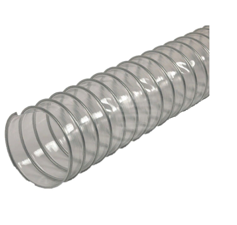 Воздуховод полиуретановый CLP-PUR диаметр 200 миллиметров, с внешней зажимной спиралью – применяется для системы кондиционирования воздуха и вентиляции, откачки и транспортировке твердых абразивных веществ таких как пыль, порошок, волокна. Рукав очень абразивостойкий, устойчив к истиранию при перемещении за счет внешней металлической.