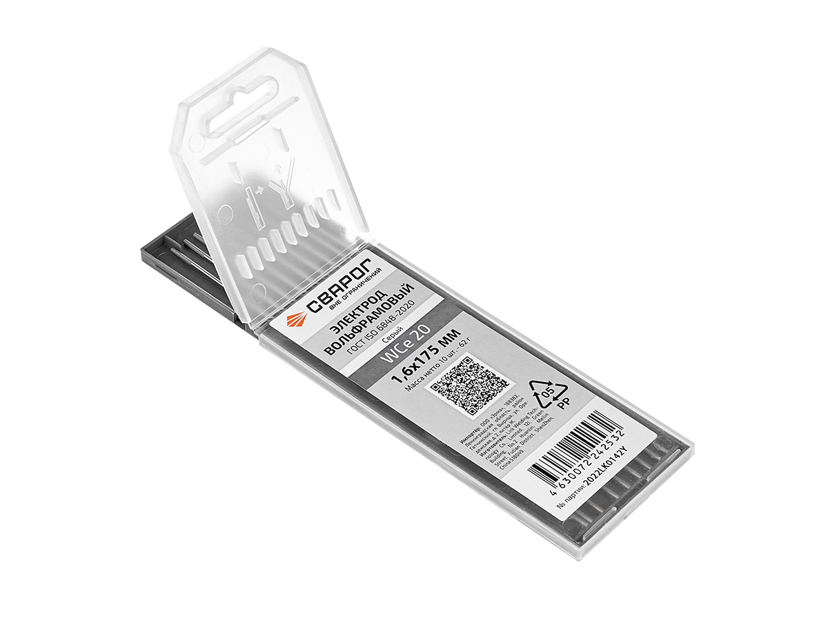WCe20− вольфрамовый электрод изготовлен с добавление диоксида церия, соответствует требованиям ISO 6848. Продукция не подлежит обязательной аттестации НАКС.