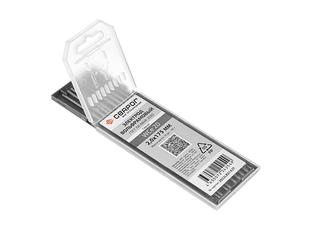 WCe20− вольфрамовый электрод изготовлен с добавление диоксида церия, соответствует требованиям ISO 6848. Продукция не подлежит обязательной аттестации НАКС.