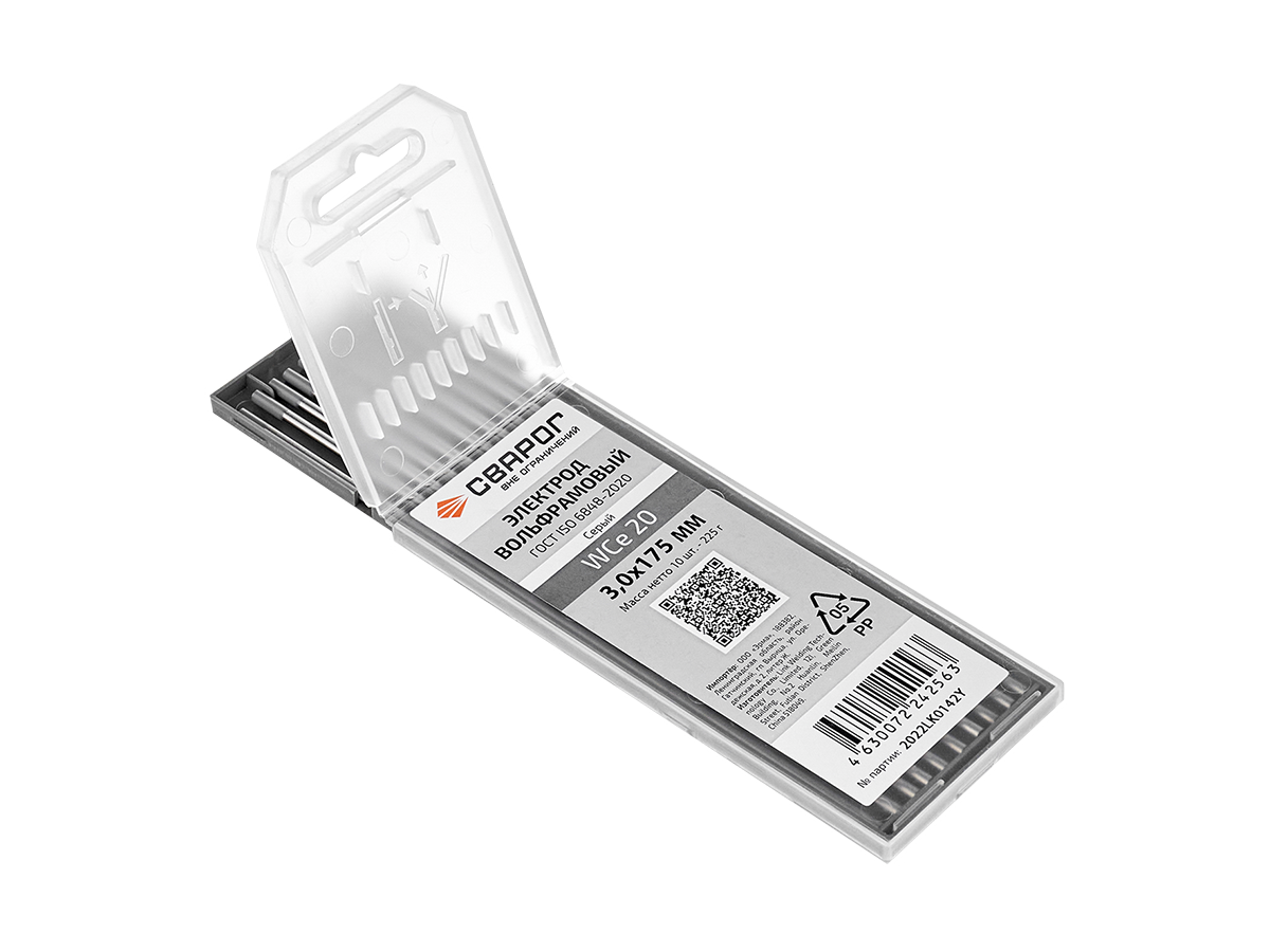 WCe20− вольфрамовый электрод изготовлен с добавление диоксида церия, соответствует требованиям ISO 6848. Продукция не подлежит обязательной аттестации НАКС.
