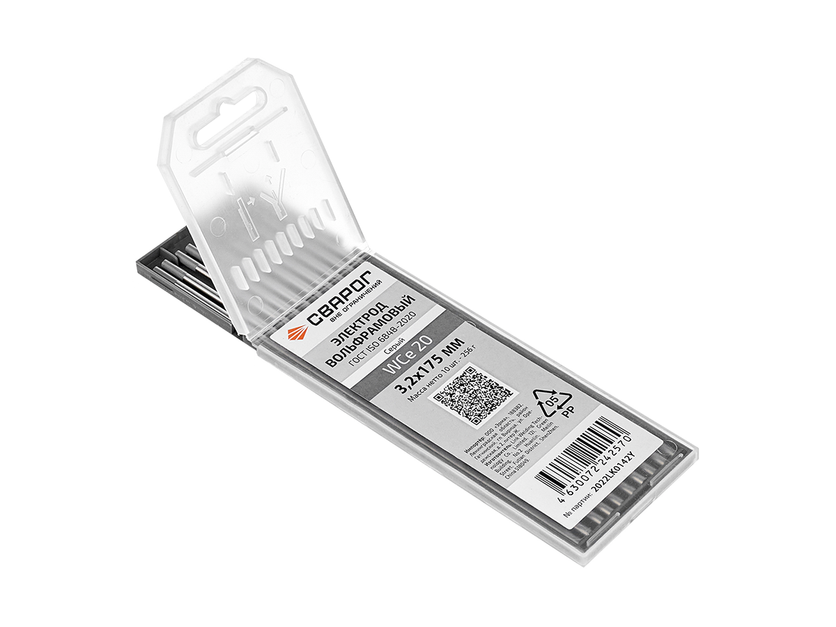 WCe20− вольфрамовый электрод изготовлен с добавление диоксида церия, соответствует требованиям ISO 6848. Продукция не подлежит обязательной аттестации НАКС.
