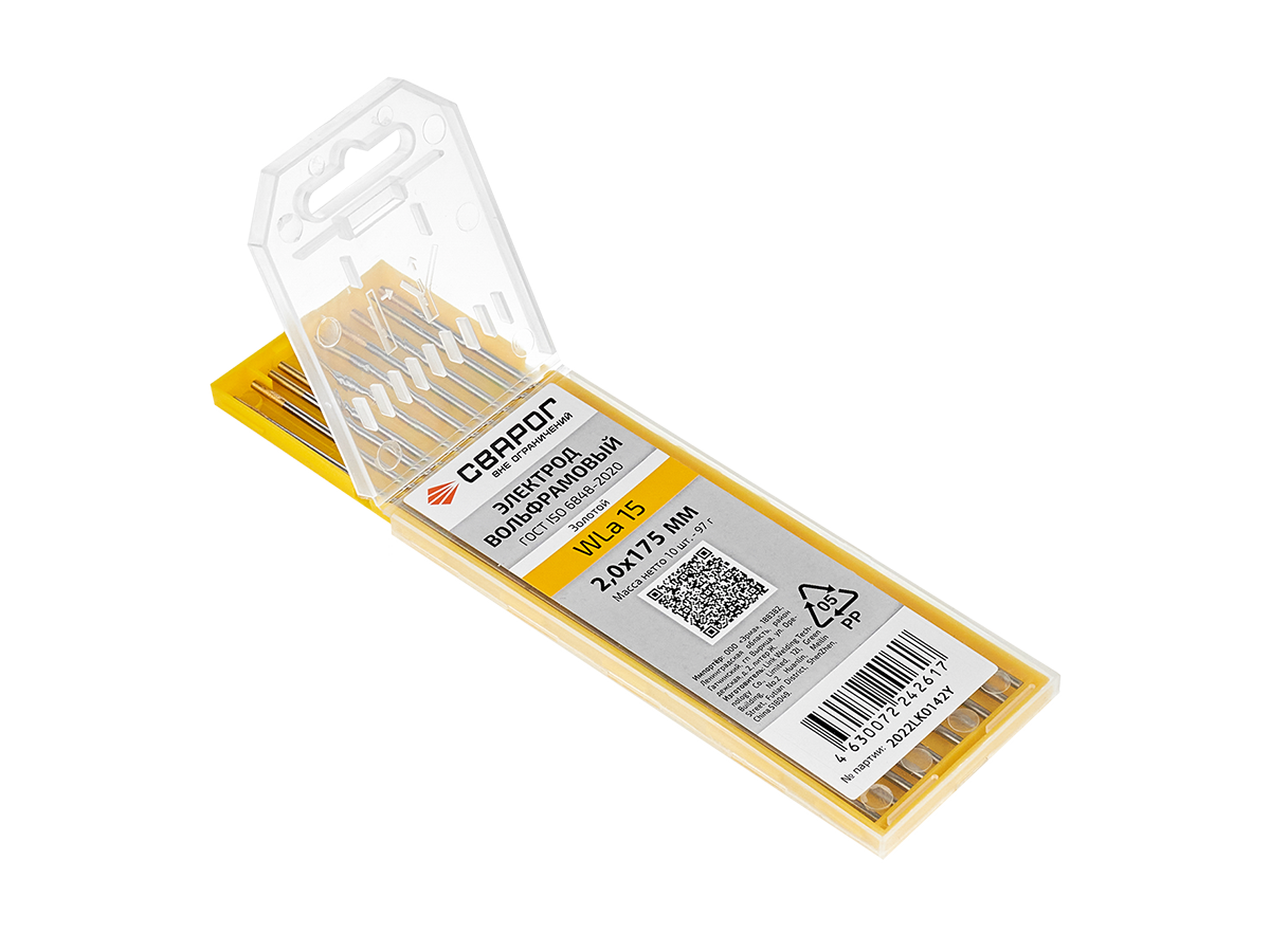 WLa15— вольфрамовый электрод изготовлен с добавление оксида лантана, соответствует требованиям ISO 6848. Продукция не подлежит обязательной аттестации НАКС.