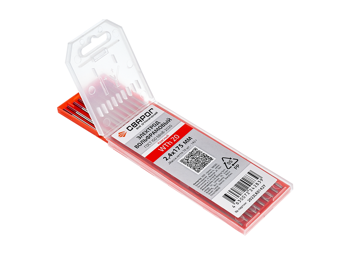 WTh20— вольфрамовый электрод изготовлен с добавление диоксида тория, соответствует требованиям ISO 6848. Продукция не подлежит обязательной аттестации НАКС.