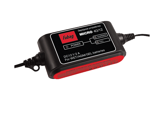 Зарядное устройство FUBAG MICRO 40/12 простое в использовании автоматическое зарядное устройство для зарядки всех основных типов аккумуляторов (AGM/GEM/WET) емкостью до 40 А*ч. Незаменимый помощник автолюбителя. Простой принцип работы, компактность, возможность подключения как напрямую к аккумулятору, так и через гнездо прикуривателя являются основными преимуществами этого зарядного устройства.